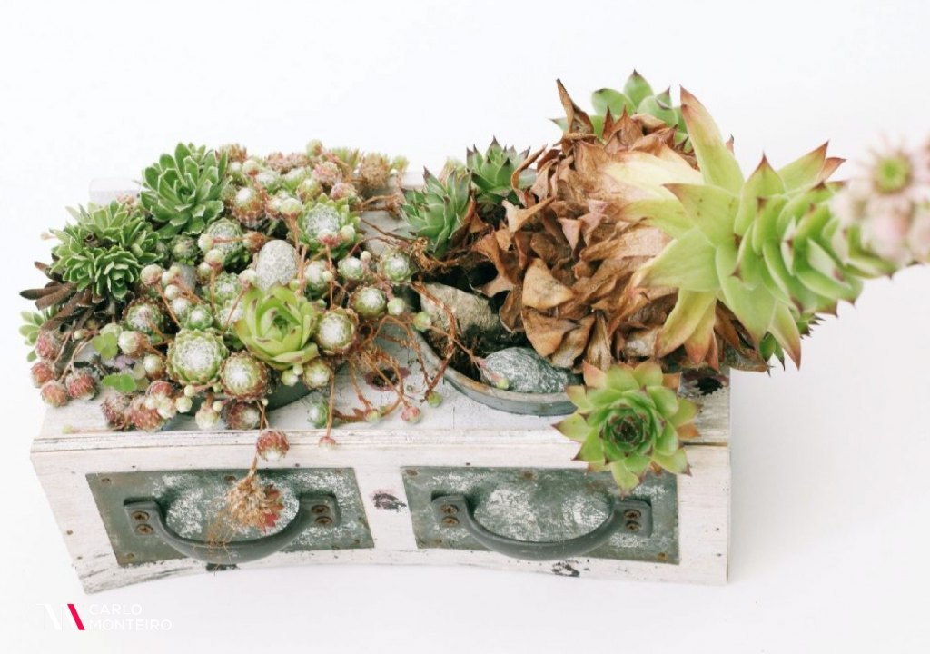 Conheces aqueles jardins zen que servem como peça de decoração? Com pedrinhas ou areia? Podes usar uma gaveta para fazer a tua própria peça personalizada. Comprando a base, podes depois escolher elementos decorativos ou até optar por um mini canteiro com catos ou suculentas.